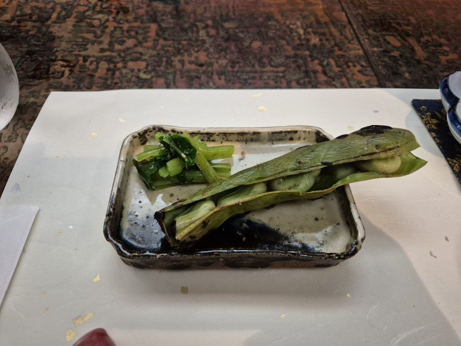 엄청난 크기의 에다마메. 저 콩 구이에 와사비잎을 절여서 곁들여 먹는데 난생 처음 먹어보는 맛이었습니다. 재료들 참 좋은거 씁니다.