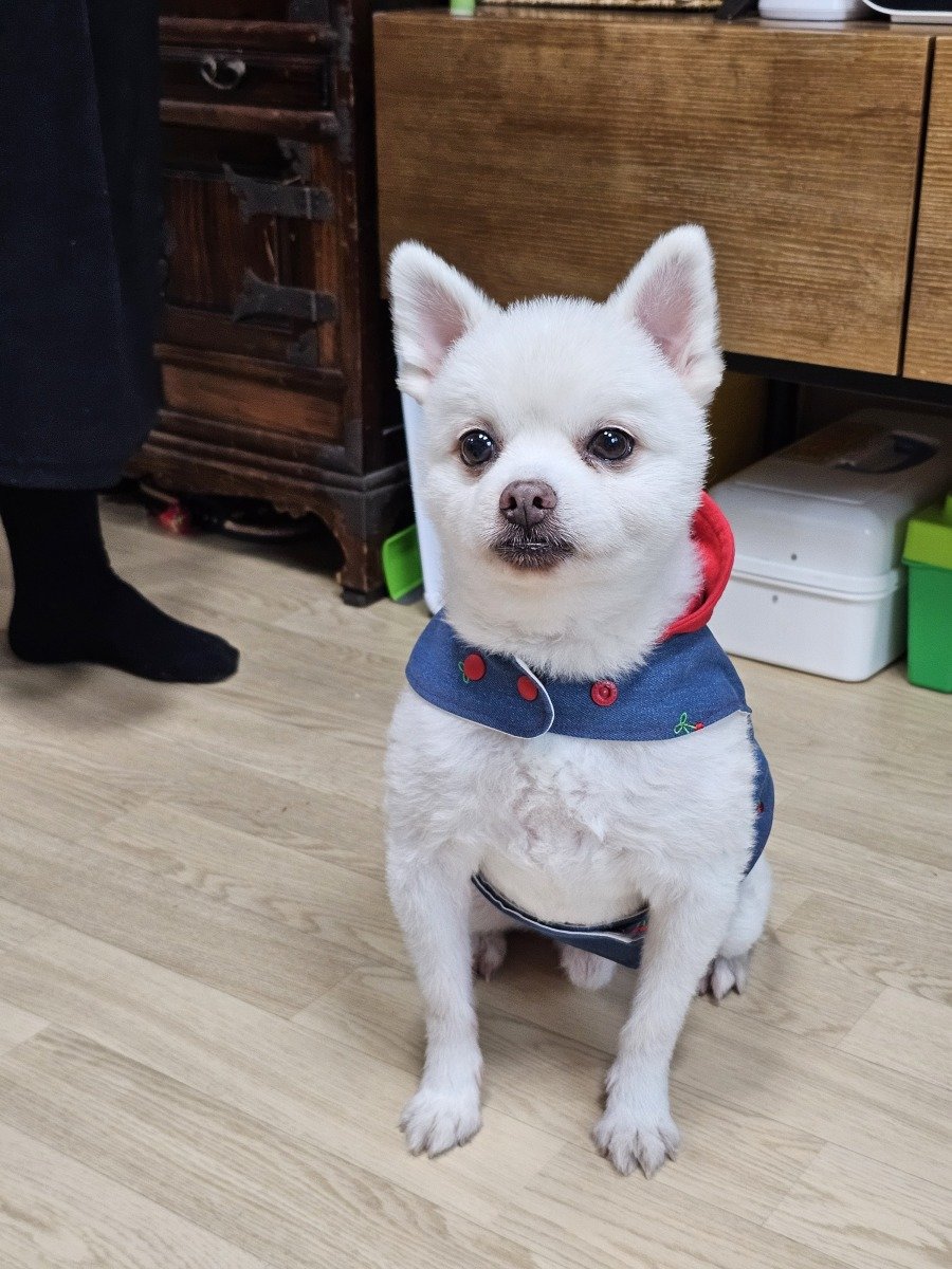 털이 흰색이라 진한 색이 잘 어울리네요. ㅋㅋ