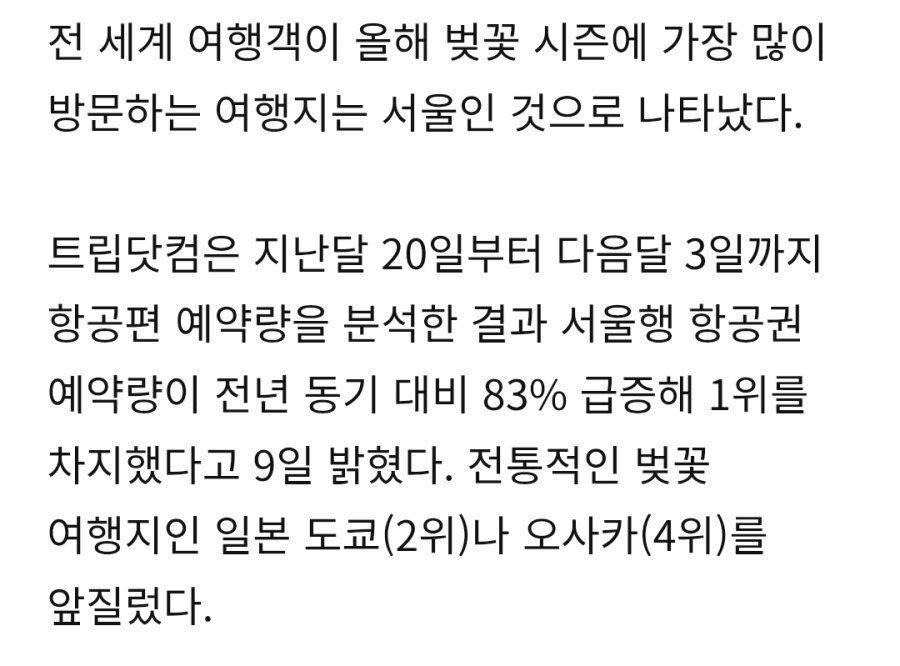 북마크일상올해 벚꽃여행지, 서울이 도쿄 제치고 1위.jpg7시간 전·조회 7,301원본: https://mlbpark.donga.com/mp/b.php?id=202604100113872917&p=1&b=bullpen&m=view&select=&query=&subselect=&subquery=&user=&site=donga.com👍추천 0👎비추천 0목록
