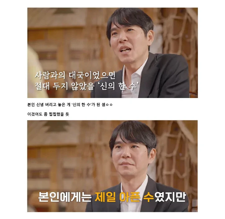 진짜... 본인 커리어에서 달리는 사람들은 알거임. 저게 얼마나 힘든지. 내 커리어에 영향이 가는 무언가를 하고 있는데, 정석/경험/데이터에 의한 완벽한 방법이 있는데, 머리로는 그걸 하면 안되고 도박을 해야한다고 계산이 나온 상황. 많은게 걸린 상황에서 그런 수를 두기는 정말 어느정도 경지에 다다른 사람 아니면 힘들듯