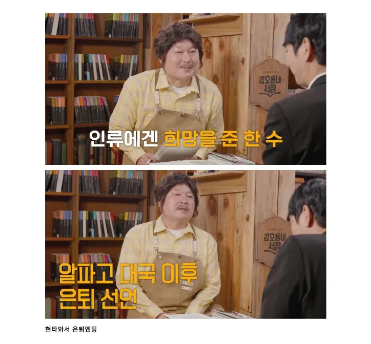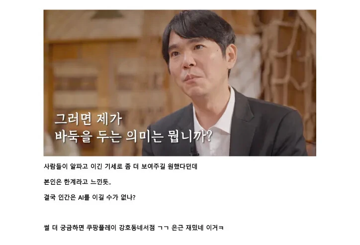 와 나도 마지막줄보기전까지 강호동 생각도 안하고있다가 다시 올려봤네 ㅋㅋㅋ 이세돌만 보면서 내린듯