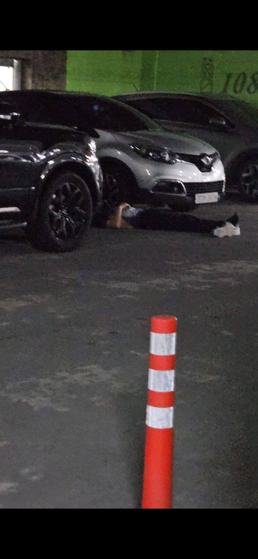 새벽에 잠이 안와서 잠깐 바람 쐬러 나왔는데 아저씨 한분이 사진상 보이는 그대로 술에 만취하셨는지 아파트 지하주차장 차 옆에서 누워계십니다;; 신고해야될까요...?